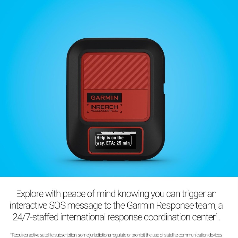Explore with peace of mind knowing you can trigger an interactive SOS message to Garmin Response℠, a 24/7-staffed international coordination center, to seek help in an emergency (active subscription required; some jurisdictions regulate or prohibit the use of satellite communication devices)